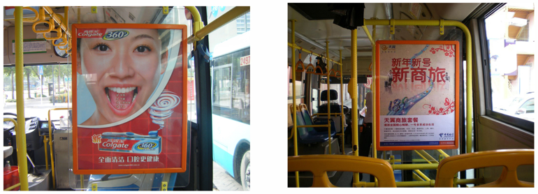 椅背广告是指公交车座椅背面上的广告,这种广告形式具有往复流动、大范围覆盖、强制性接触、强烈的视觉色彩冲击、千人成本最低的特点。广告发布在座椅头枕后面的黄金位置刚好与乘客的视线面对面不到一尺,乘客的视线无法回避广告位置,并长时间近距离与广告面对面接触便于阅读,有小投入大回报的惊人广告效果。深圳公交广告免费咨询热线:400-8853-021